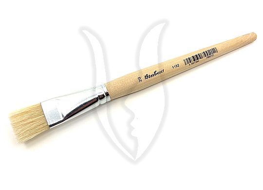 Erős, közepesen kemény, kissé durva sörtéből készült, egyenes-lapos formájú ecset. Natúr fa nyéllel készült.