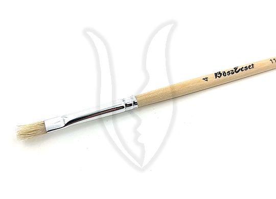 Erős, közepesen kemény, kissé durva sörtéből készült, egyenes-lapos formájú ecset. Natúr fa nyéllel készült.