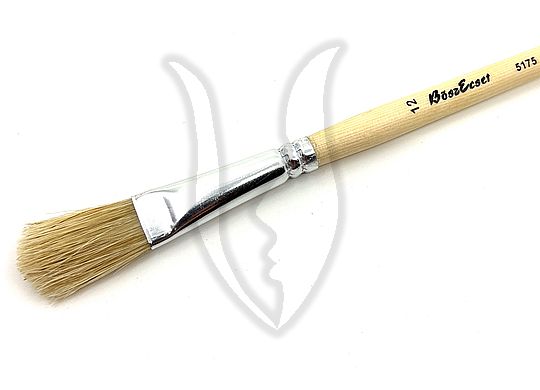Hosszúkás ovális alakú, kissé erősebb szálú sörte ecset, rövid natúr fa nyéllel készül.