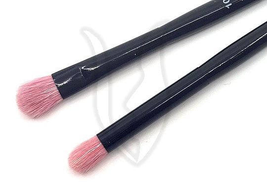Különleges megjelenésű, rózsaszín szálú ecset, lakkfekete nyéllel és foglalattal.