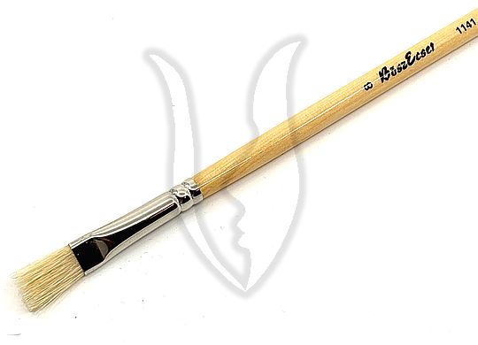 Lapított, egyenesvégű natúr sörte anyagból készült olajfestő ecset.
