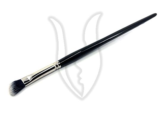 Lapos foglalatban, kifelé szélesedő, lágy ferde ecset, lakkozott fekete nyéllel.