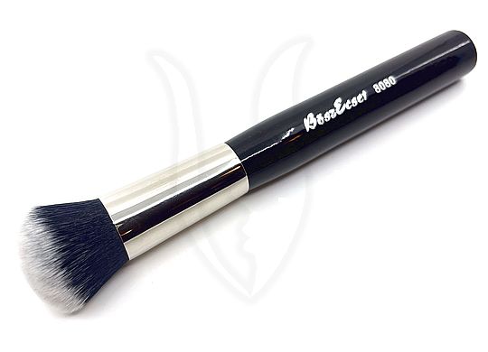 Tömör, kerekített fejrészű, puha szintetikus alapozó ecset.
