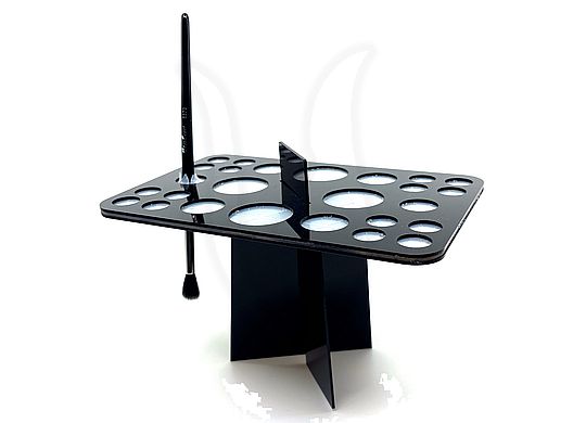 Sminkecset tartó, szárító, műanyag állvány.Fekete akril, szilikon membránnal 26 ecset férőhellyel.