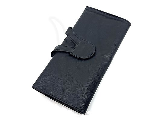 Fekete műbőr védőlappal ellátva, az ecsetek védelme érdekében, mágneses patenttal zárható.
