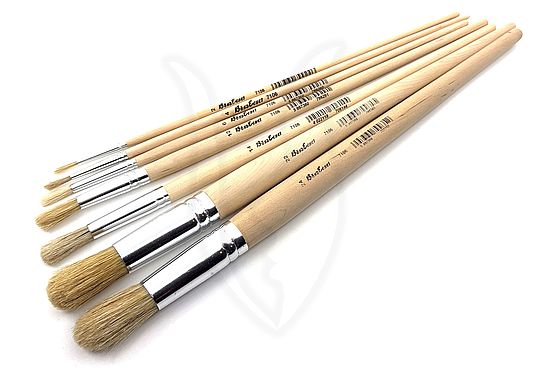 Erős, sűrű szálú sörte ecset,kerek alakú foglalatban. fejrésze kissé szélesedő, tompa hegyű. Hosszú natúr fa nyéllel készült. Festővászonra olajfestéshez, sűrűbb anyagok felvitelére tökéletes választás.