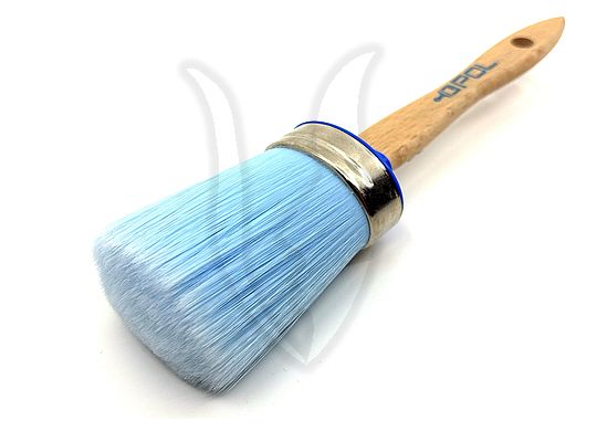 Ovális fejformájú ecset, világoskék szintetikus szálból készült.
