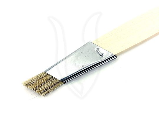 Vékony, ferde fejrésző sörte ecset, natúr fa nyéllel készült.