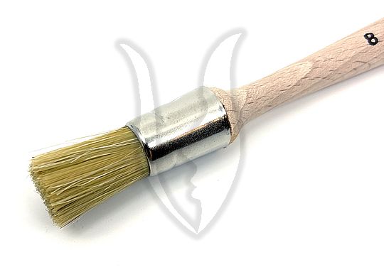 Kerek sörte ecset, rövid natúr fa nyéllel. Alkalmas ragasztáshoz, sablonnal való festéshez.