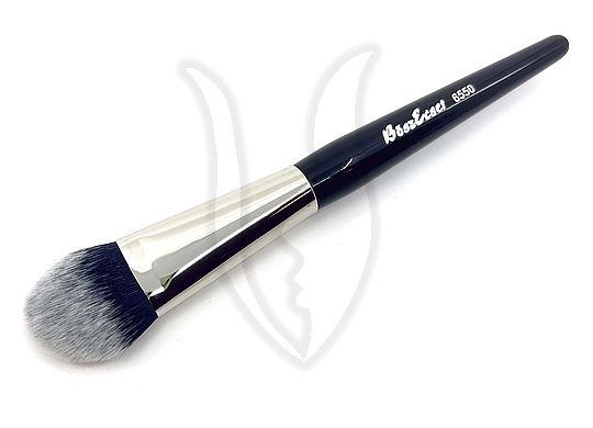 Széles, lapított foglalatban, oválisan ívelő, fokozatosan elvékonyodó alapozó felvivő ecset.