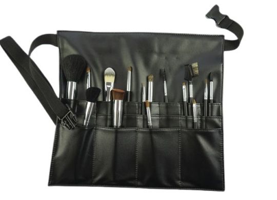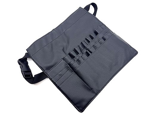 Elegáns és praktikus fekete műbőr sminkecsettartó tok.