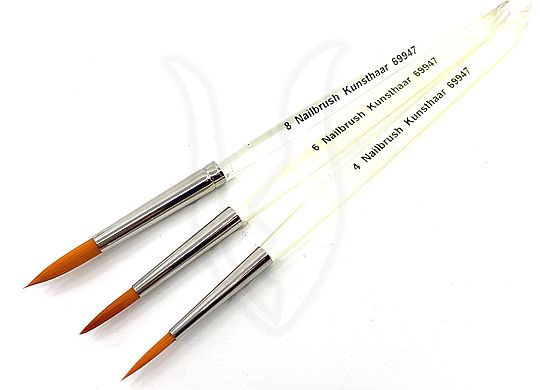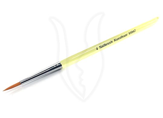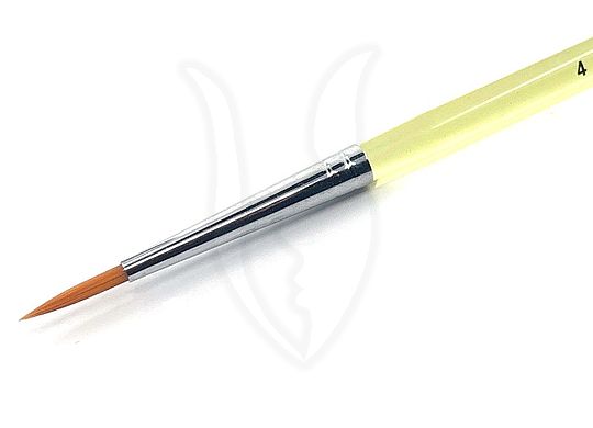 Aranysárga szintetikus szálból készült hegyes alakú ecset, áttetsző halványsárga akryl nyéllel kapható.